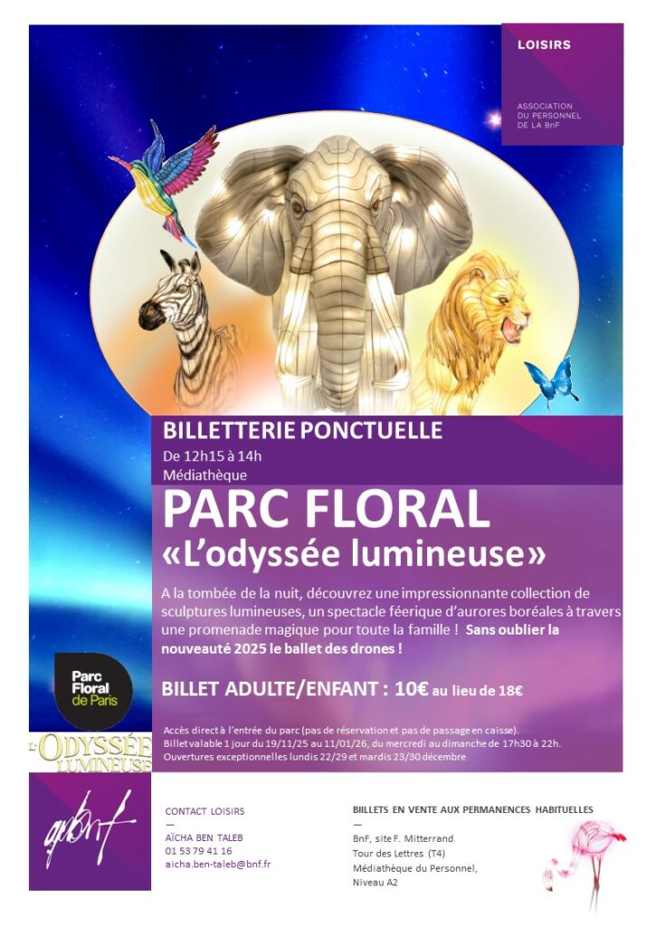 L’APBnF vous propose des billets à tarifs préférentiels pour le Parc Floral « L’odyssée Lumineuse ».