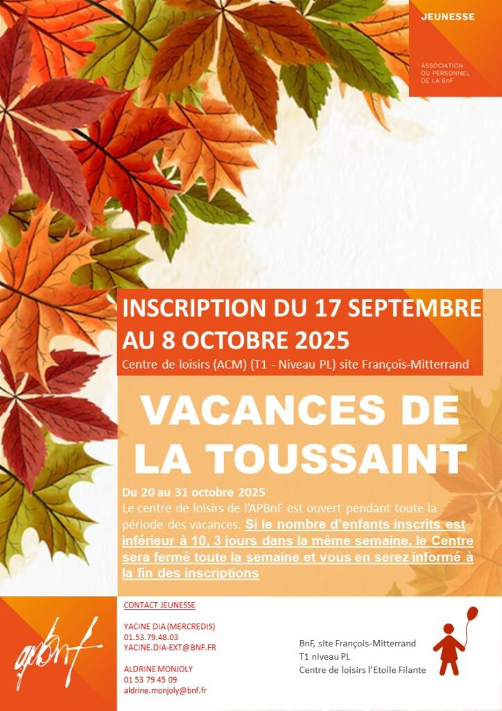 Veuillez trouver ci-joint le bulletin d’inscription pour les vacances de la Toussaint 2025 : Bulletin-dinscription.pdf