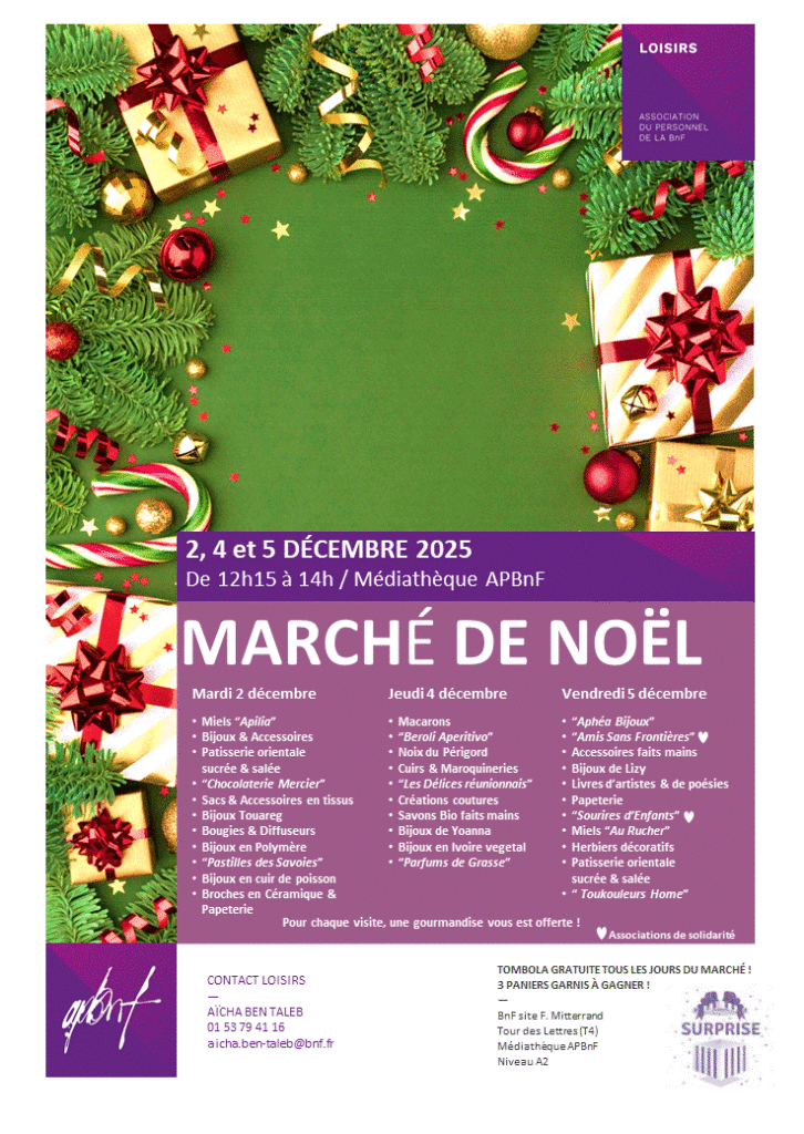 Le Marché Marché de Noël de l’APBnF s’installe pour cette nouvelle édition à la médiathèque les