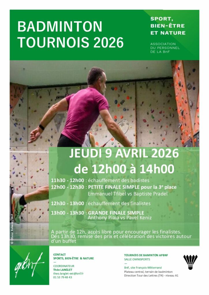 Venez nombreuses et nombreux encourager nos finalistes de l’édition 2026 du Tournoi APBnF de Badminton !