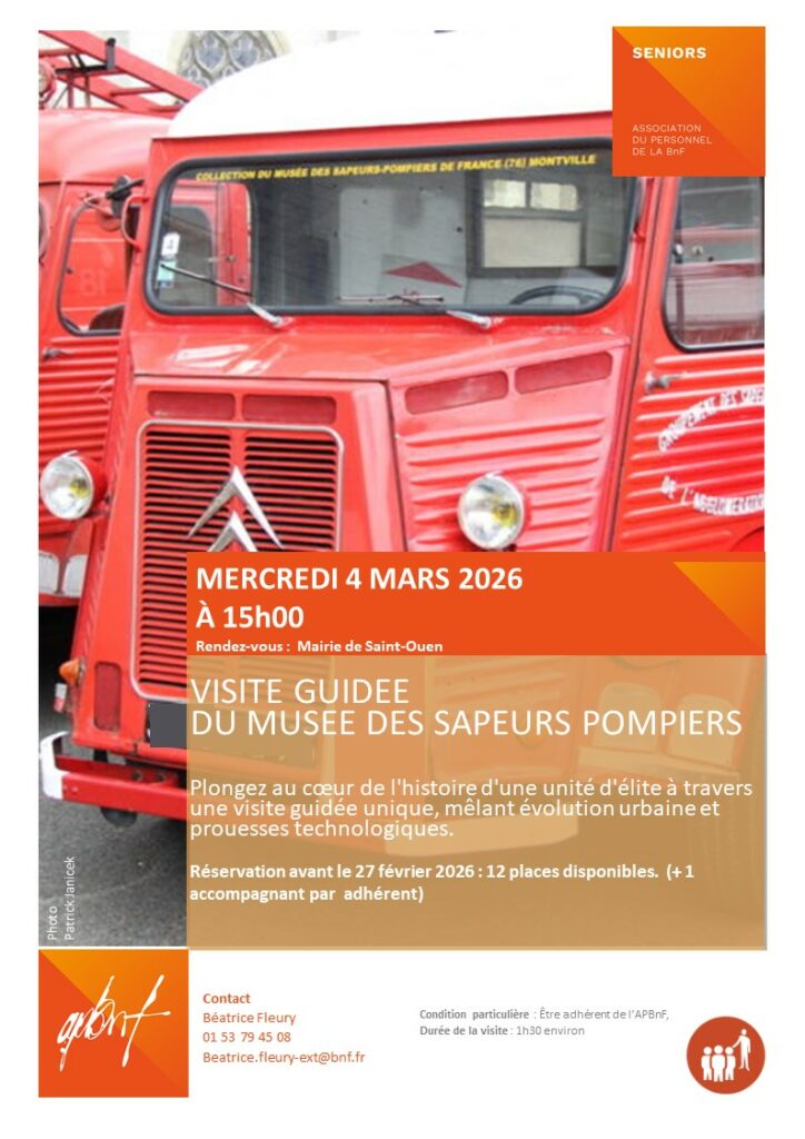 Réservation avant le 27 février 2026 : 12 places disponibles. (+ 1 accompagnant par adhérent)